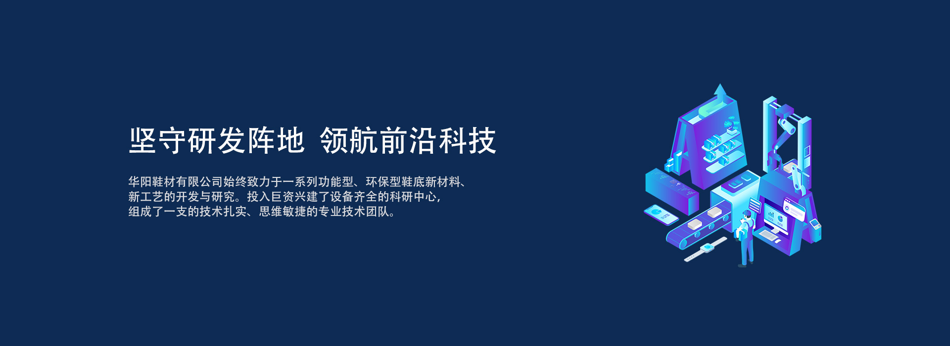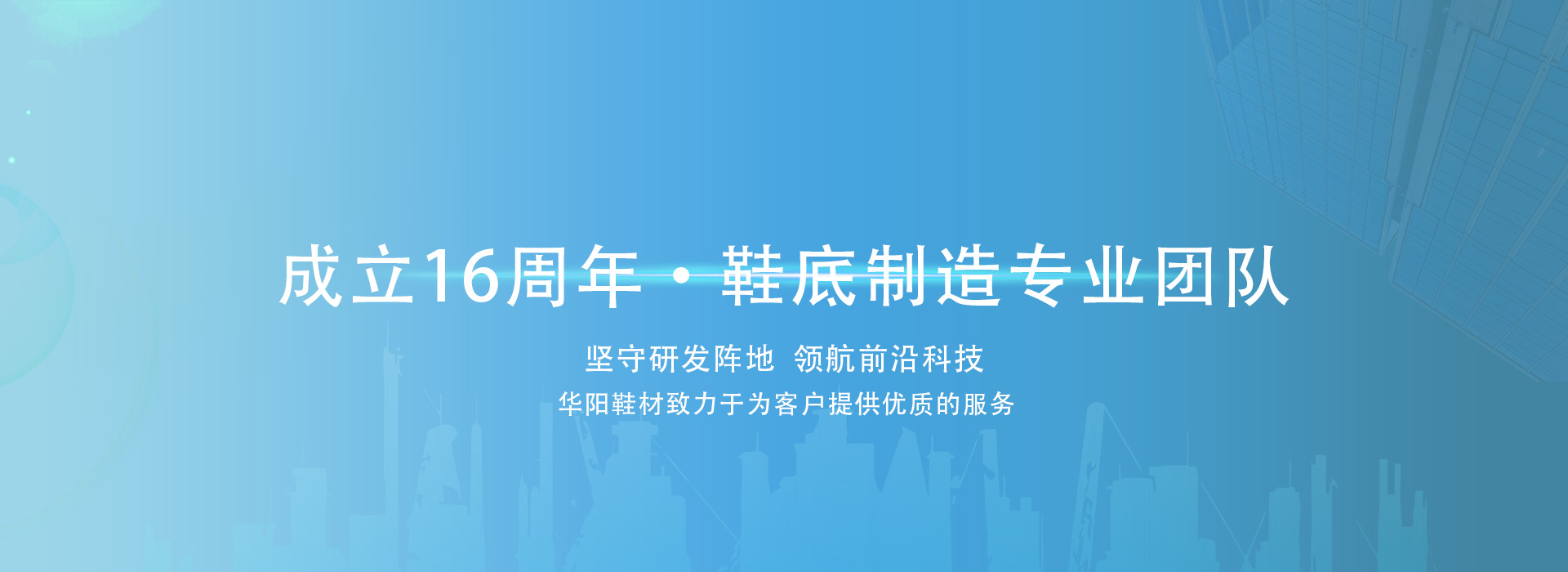 華陽(yáng)鞋材于2004年成立,傳承晉江傳統(tǒng)工匠精神與現(xiàn)代化工藝技術(shù)完美融合,全面滿足客戶需求,成為國(guó)內(nèi)市場(chǎng)上專業(yè)的鞋底制造商之一。多年來(lái),華陽(yáng)鞋材自主研發(fā)及引進(jìn)最先進(jìn)智能生產(chǎn)設(shè)備,致力于生產(chǎn)EVA一次(IP)成型鞋底、EVA二次(MD)成型鞋底、TPR鞋底、RB(橡膠)鞋底,TPU鞋底及配件及底材組合。